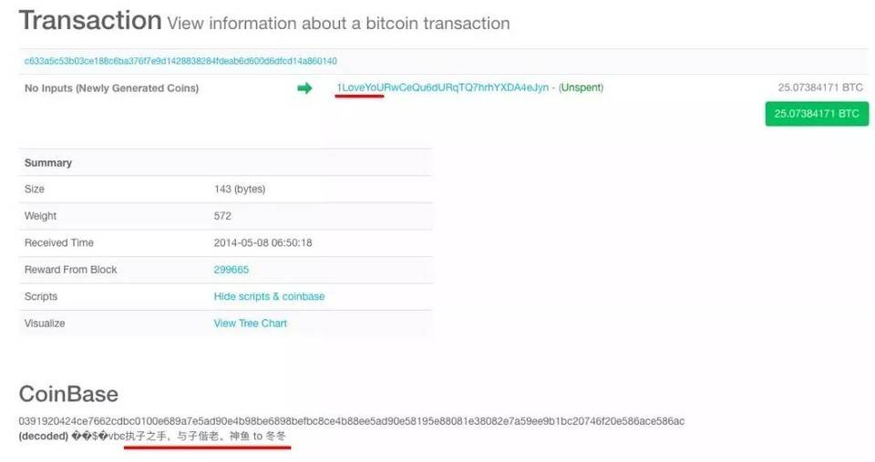 神鱼特意将它存到自己花 18 个小时算好的以「1LoveYoU」为开头的账户地址中。交易记录中写道:「执子之手,与子偕老。神鱼 to 冬冬。」