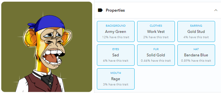 - Ape #73’s statistical rarity is 0.00000000070744%