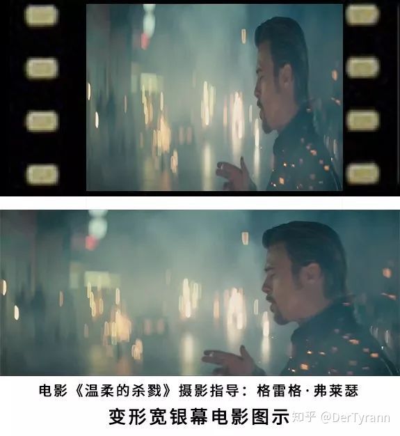 后续在影院放映时,再用反向变形镜头将变形的成像比例回复到正常情况,在银幕就呈现了比镜头原本焦距更宽的画面。