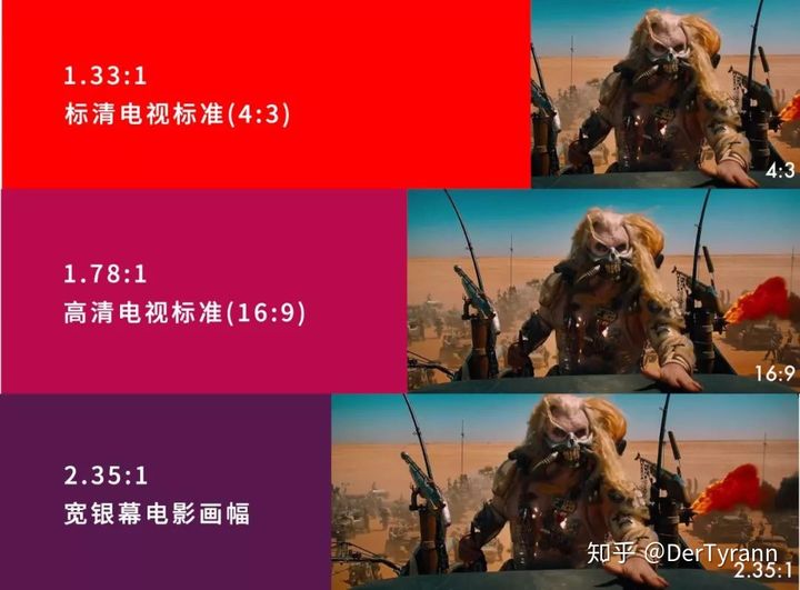 2.35:1 实际上是把 4:3 的比例进行了 3 次方(即 64比27),这个画幅比能获得更宽的横向视野。